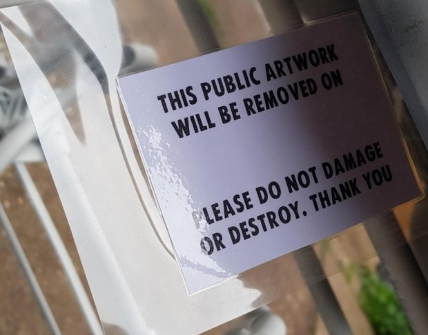 Designed to pique the general public’s inquisitive mind, this is a low risk, high impact visual action that can be done by individuals. It is well suited to this time when we cannot gather but when people are still out and about.