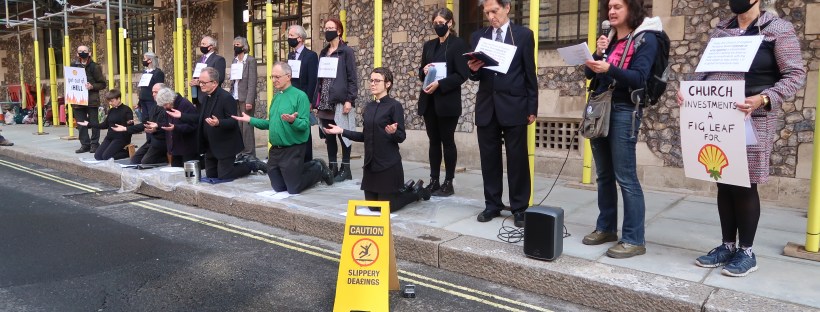 The vigil follows an open letter, signed by nineteen members of the clergy and sent by Christian Climate Action to the National Investing Bodies (NIBs) last week. The letter calls on the Church Commissioners and the Pensions Board to stop investing in Shell and to redirect their investments towards funds that promote the common good. The vigil coincided with Shell’s AGM at which the Pensions Board had indicated they planned to vote against a shareholder resolution asking for Shell to take meaningful action to align its investment with the Paris climate targets.