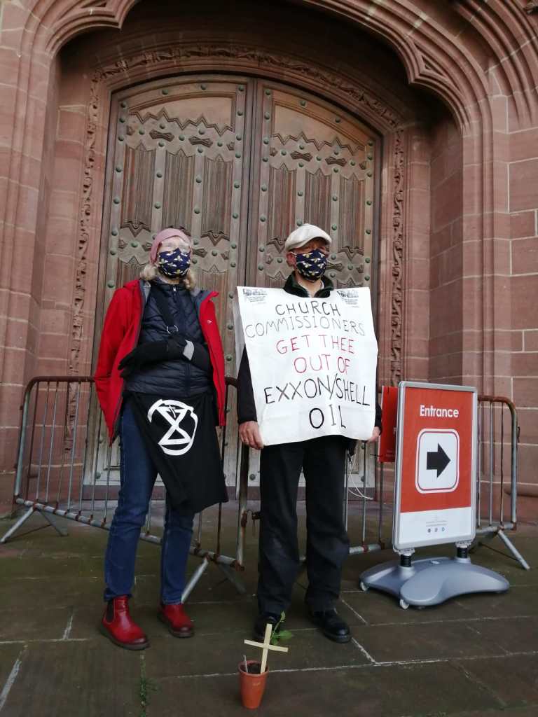 Earlier the same afternoon Christians held vigils outside Church House in London and at cathedrals in Chester, Salisbury, Liverpool and Bristol. They have been asking and praying for the Church to ‘Exit Exxon’ and divest from all fossil fuels immediately. Instead, they would like to the see the church invest in funds that promote the common good.