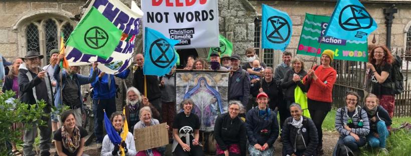 The Polmanter contingent met the pilgrims at St Phillack and walked with them to St Uny’s at Lelant where we were warmly welcomed to the ancient church by the vicar and a number of police officers who were clearly there to keep the peace. I don’t think they expected protesters to come in prayer. After being inspired by the end of pilgrimage service led by Revd Helen Burnett, and saying farewell with a leave-taking prayer, the pilgrims went their various ways.