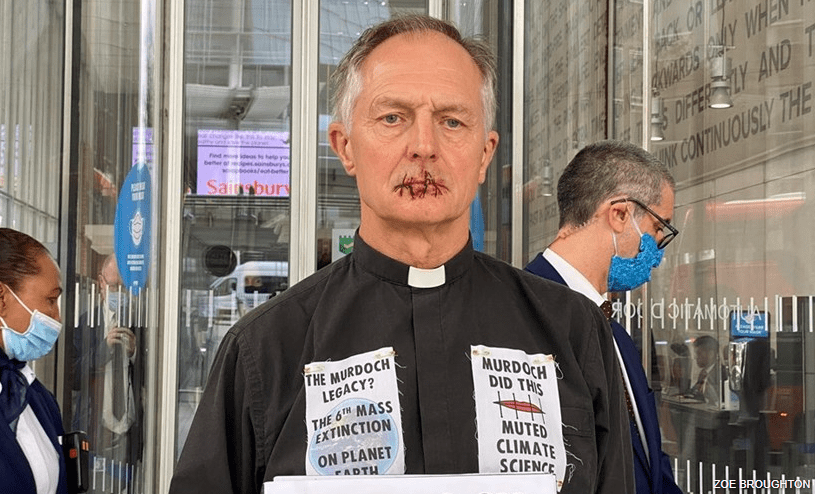On August the 2nd last year, I went to the News UK building, which is the UK centre for Murdoch media activities in the UK, which is near the Shard, and sewed my lips up as a mark of my total frustration that the influence Rupert Murdoch has had and continues to have on the lack of action on climate change.