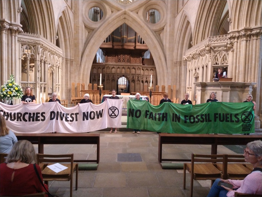 Those taking part in the action at Wells Cathedral acknowledged that the Church Commissioners have agreed to begin divesting from fossil fuel companies not aligned with the Paris Agreement in 2023. However, they contend that companies like Shell are still committed to future fossil fuel exploration and that there are very few signs that they will align themselves with the Paris Agreement. As the latest IPCC report states very starkly – humanity is running out of time!