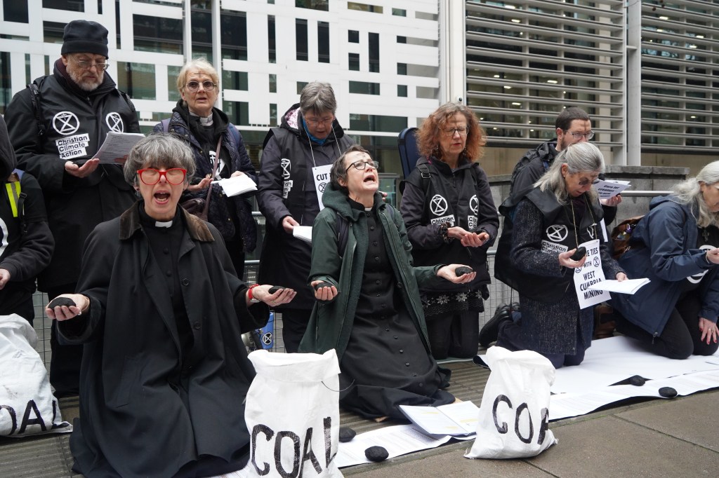 Today vicars and other Christians protested outside the Leeds, Manchester and Newcastle offices of Ward Hadaway, lawyers for West Cumbria Mining Limited, and the London headquarters of Javelin Global Commodities, which has an exclusive marketing and offtake agreement with West Cumbria Mining. They are calling on both companies to “cut the ties” with the proposed new coal mine in Cumbria. The protesters held banners with the message ‘Coal is killing humanity’ and delivered letters asking the organisations to end their involvement with West Cumbria Mining. The Christians took part in the actions as part of a group called Christian Climate Action [1].