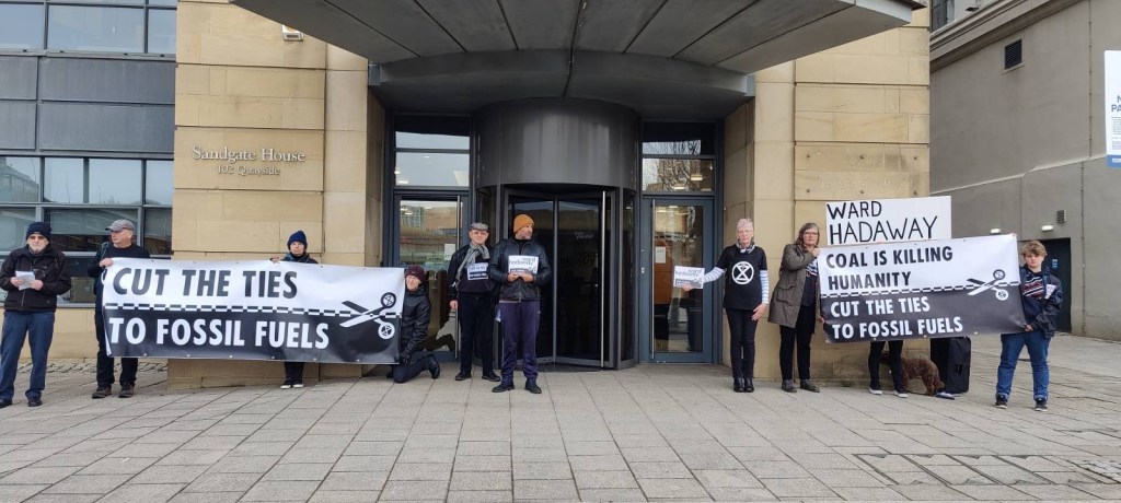 Anne Blair- Vincent, who took part in the Newcastle protest said: “West Cumbria Mining are putting profit before people and Ward Hadaway is helping them do this and making money from it. We could be leading the world towards a brighter future by investing in renewable energy but instead we are setting an example of greed and hypocrisy by opening a new coal mine. As a Christian I have to speak out about the harm that this will do and also pray for all those involved to have a change of heart.”