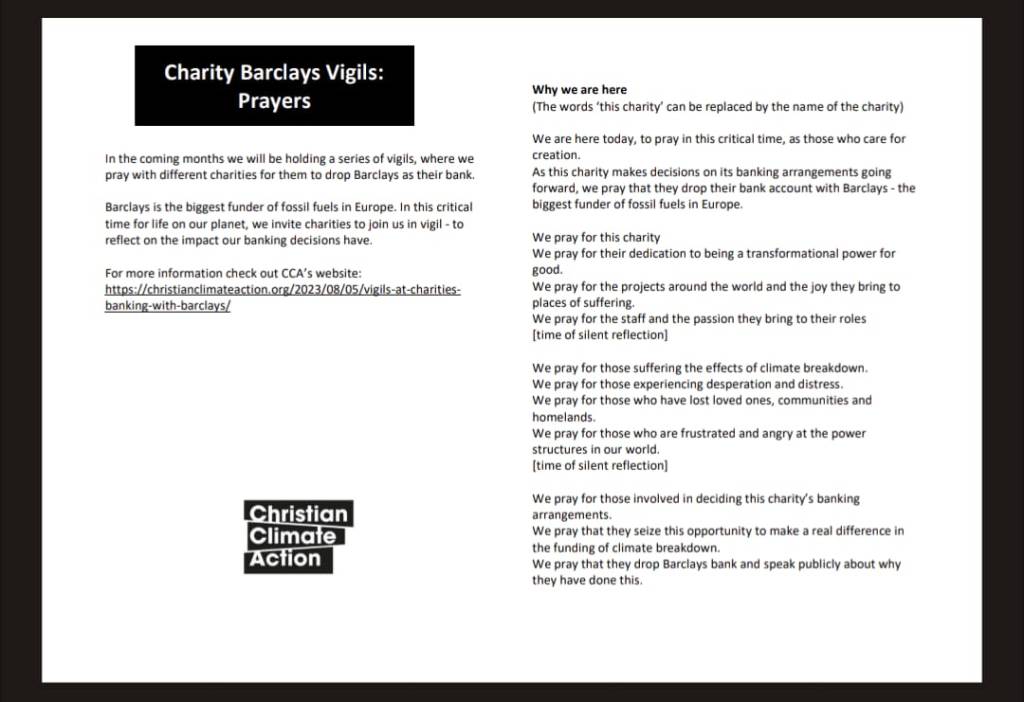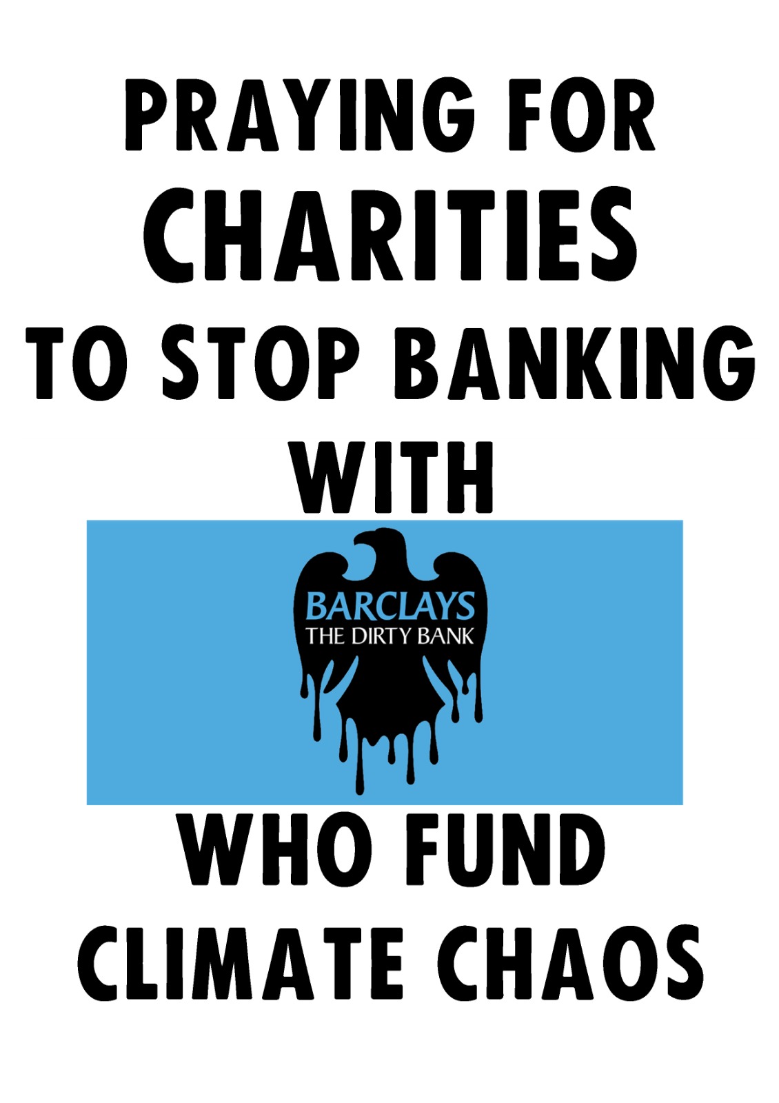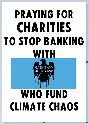 In Christian Climate Action, we believe in the power of prayer. The prayer vigil we held outside of Christian Aid Headquarters was a key aspect in them switching banks. Going forward we are planning a series of vigils outside the HQs of the charities still banking with Barclays – praying with them as they make difficult decisions about their banking arrangements.