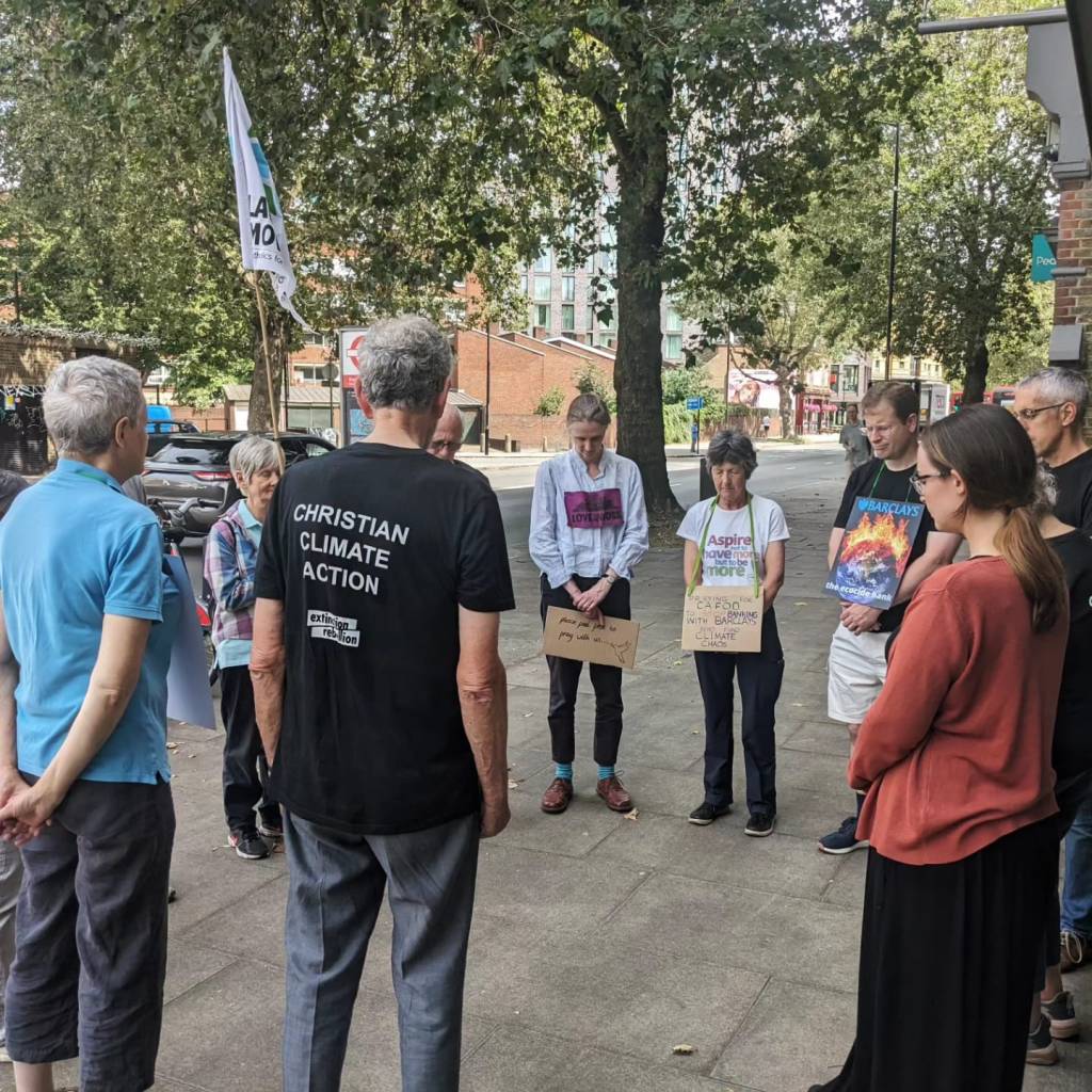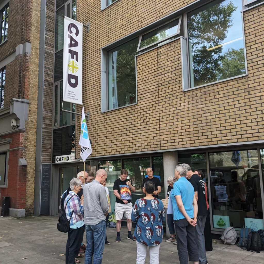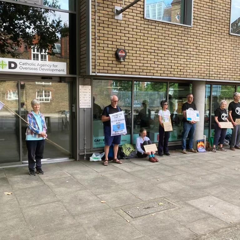 On the 11th August, we held a prayer vigil outside the headquarters of Catholic development agency CAFOD. We were praying for and with the charity as they consider their banking arrangements going forward. The core plea of our prayers is that CAFOD are able to drop their bank account with Barclays, the biggest funder of fossil fuels in Europe. This followed a similar vigil outside Christian Aid, which led to that charity recently closing its Barclays account.