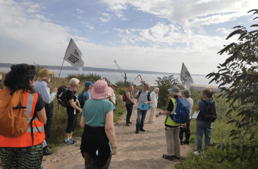 They paused at significant places such as the flood defence of tidal terraces and reedbeds, the Tribe and Tribulation sculpture, the Ecology Park and saw the sand and gravel aggregates taken from the sea-bed.
