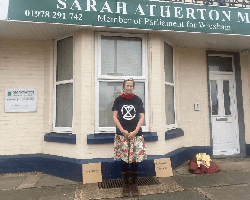 Jackie Knightly held a prayer vigil outside her MP’s office, Sarah Atherton MP, in Wrexham in advance of the upcoming COP28. She posted a copy of ‘Laudate Deum,’ Pope Francis’ most recent writings calling for political change on a national and international level to tackle the #ClimateCrisis. She also asked her MP to raise awareness of how vital a Loss And Damage fund is, to make sure that vulnerable communities in the Global South are adequately recompensed for the loss and damage they suffer from the effects of climate change.