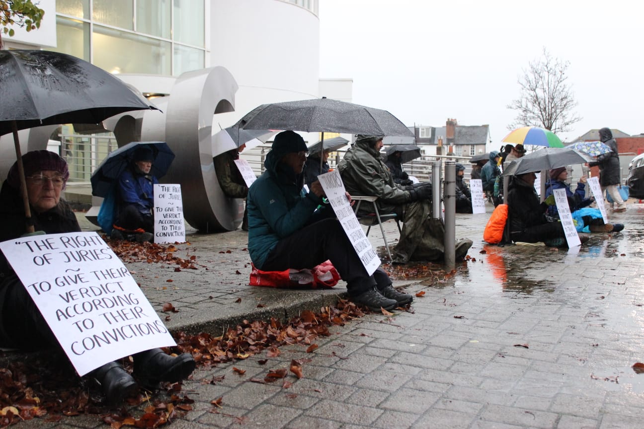 co-ordinated by the Defend our Juries campaign. Locations where CCA were present included Aylesbury, Bristol, Bournemouth, Canterbury, Croydon, Derby, Exeter, Lewes, Lincoln, Kingston, Preston, Manchester, Newcastle and Taunton.