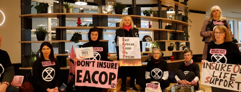 A group of Christians occupied the lobby of insurance company, Probitas 1492, in London for five hours on Tuesday 27th February to ask them not to insure the East Africa Crude Oil Pipeline (EACOP). Others gathered in prayerful vigil outside the building.