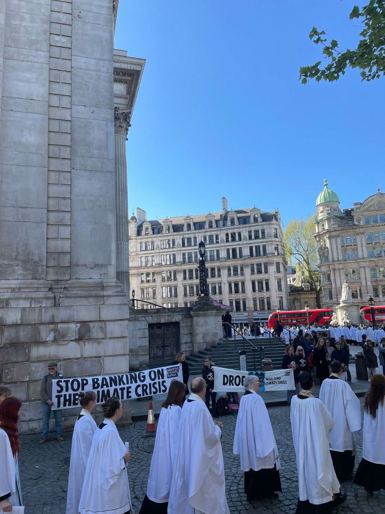 Last month we saw Christian Climate Action members held vigils at Exeter, Winchester, Gloucester, Hereford and Ripon Cathedrals. More recently we’ve also held vigils at St Pauls Cathedral, Winchester Cathedral, Westminster Abbey, St Albans Cathedral and Guildford Cathedral. They have been a great opportunity to engage with cathedral staff and visitors on the issue, and explain why banking choice has such a huge impact on the world around us.