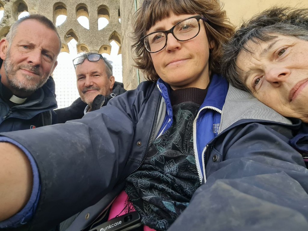Rev Bill White, 70, visited the Abbey on Saturday 13th September alongside three other members of Christian Climate Action. They hung a banner from the Abbey tower and had with them copies of a new CCA publication, Stop Crucifying Creation.