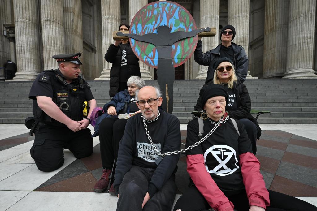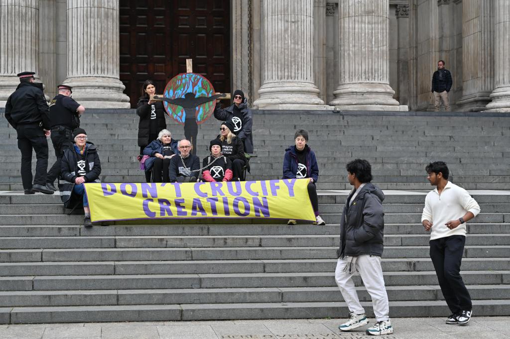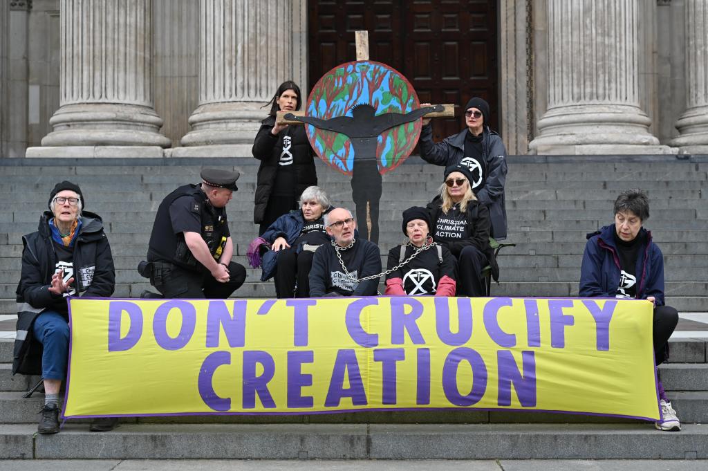 Members of Christian Climate Action have chained themselves to a cross today, Good Friday, on the steps of St Paul’s Cathedral. In an act of worship and grief for the crucifixion of the world, as the climate emergency worsens, they are calling on the Church of England to do more to tackle climate change.
