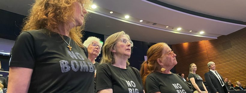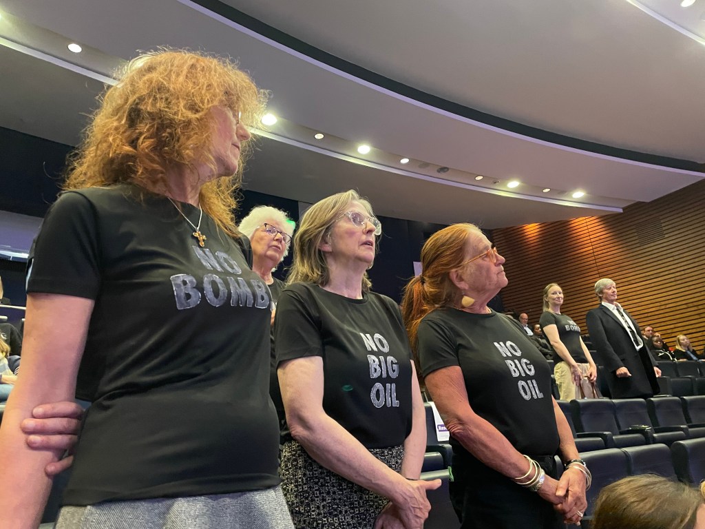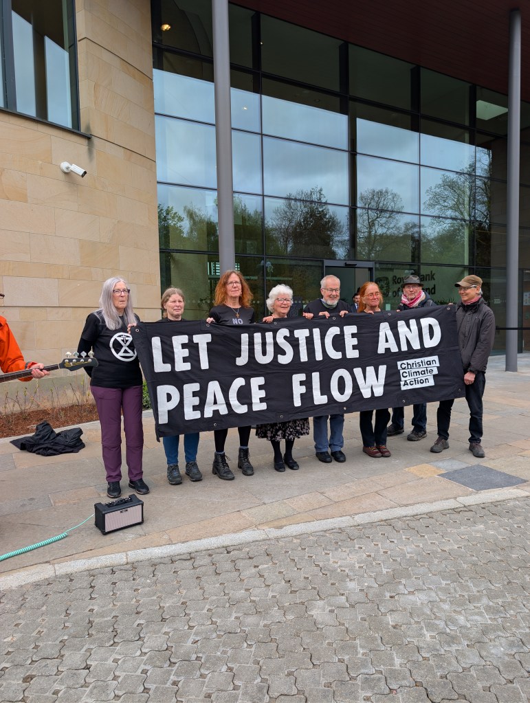 NatWest’s AGM was adjourned for half an hour on Tuesday 28th April after people from Christian Climate Action, alongside other groups, disrupted it with a statement and singing. They were calling on the bank to stand by its climate commitments after it recently weakened its oil and gas policy. The AGM was being held at the Gogarburn Conference Centre outside Edinburgh.