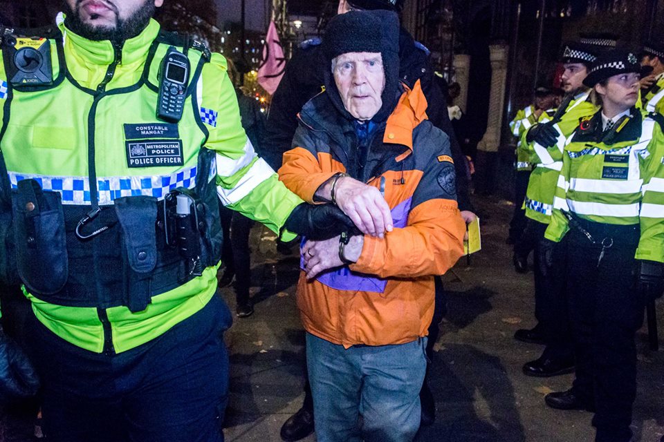 Phil Kingston, 82 , is led away from the Brazilian Embassy by police Published November 16, 2018 at 960 × 640