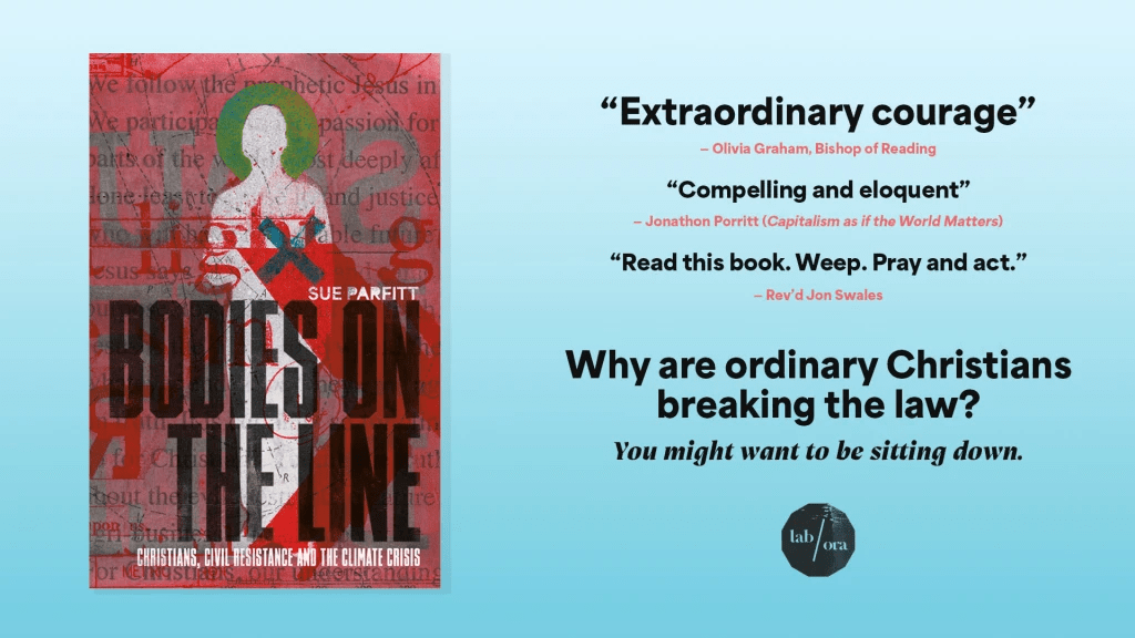 Bodies on the Line: Christians, Civil Resistance and the Climate Crisis by Rev Sue Parfitt, a much loved and long-time member of Christian Climate Action.